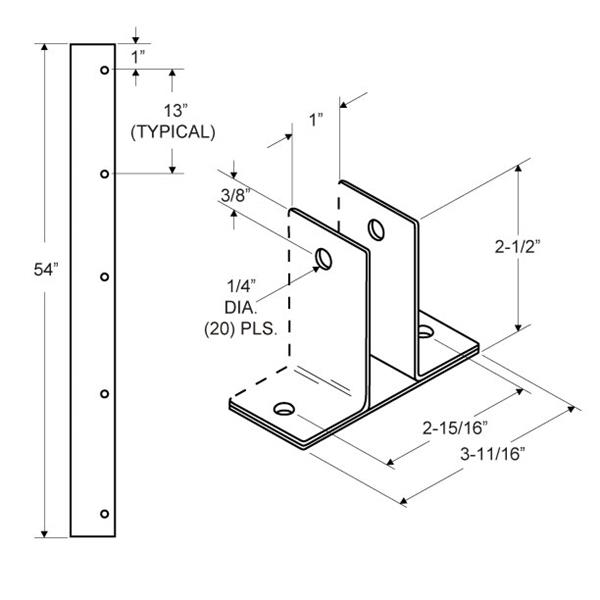 WALL BRACKET TWO EAR 1" X 54" STAMPED S/S