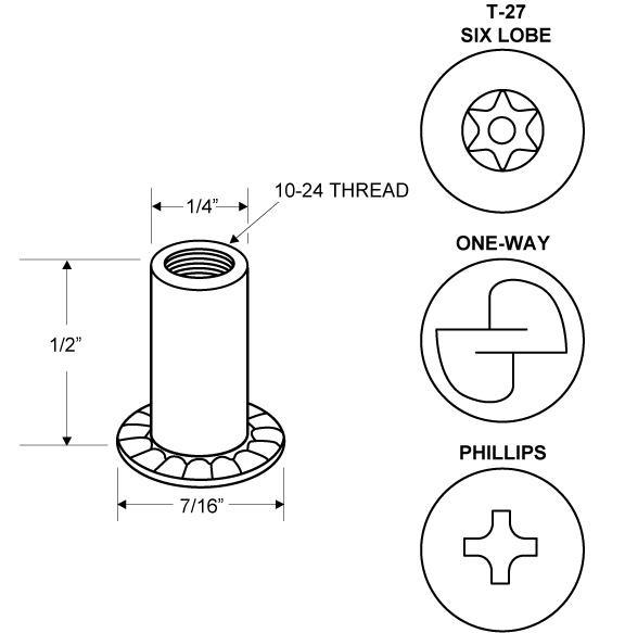 BARREL NUT ONE WAY 10-24 X 1/2" STEEL/CHROME