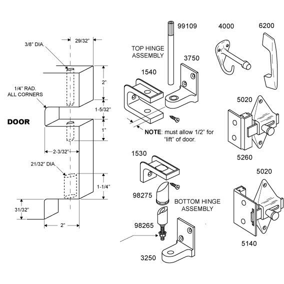 [descrip] => DOOR HARDWARE (INSWING) 7/8" DOOR 1-1/4" POST (FLAT HINGE,S&K)