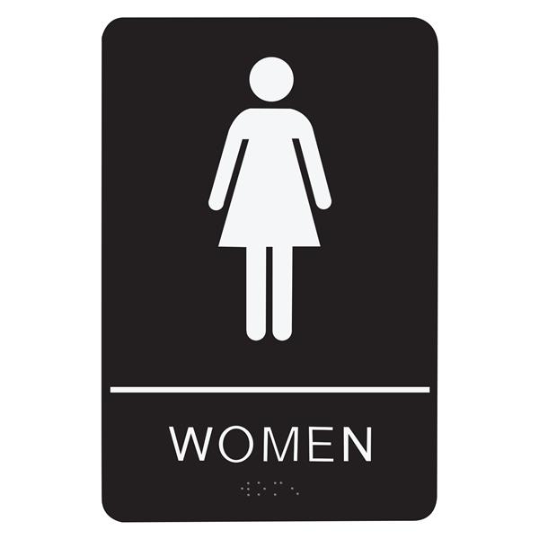 [descrip] => SIGN RESTROOM WOMEN - BRAILLE - BLACK ACRYLIC
